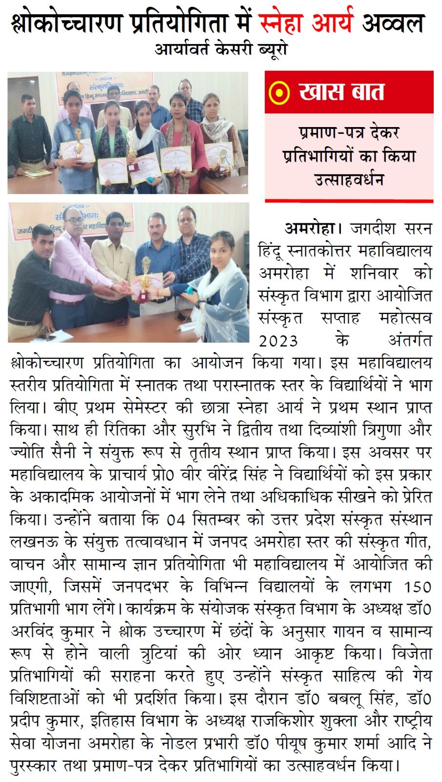 संस्कृत सप्ताह महोत्सव - षष्टं दिवस (2 सितंबर)